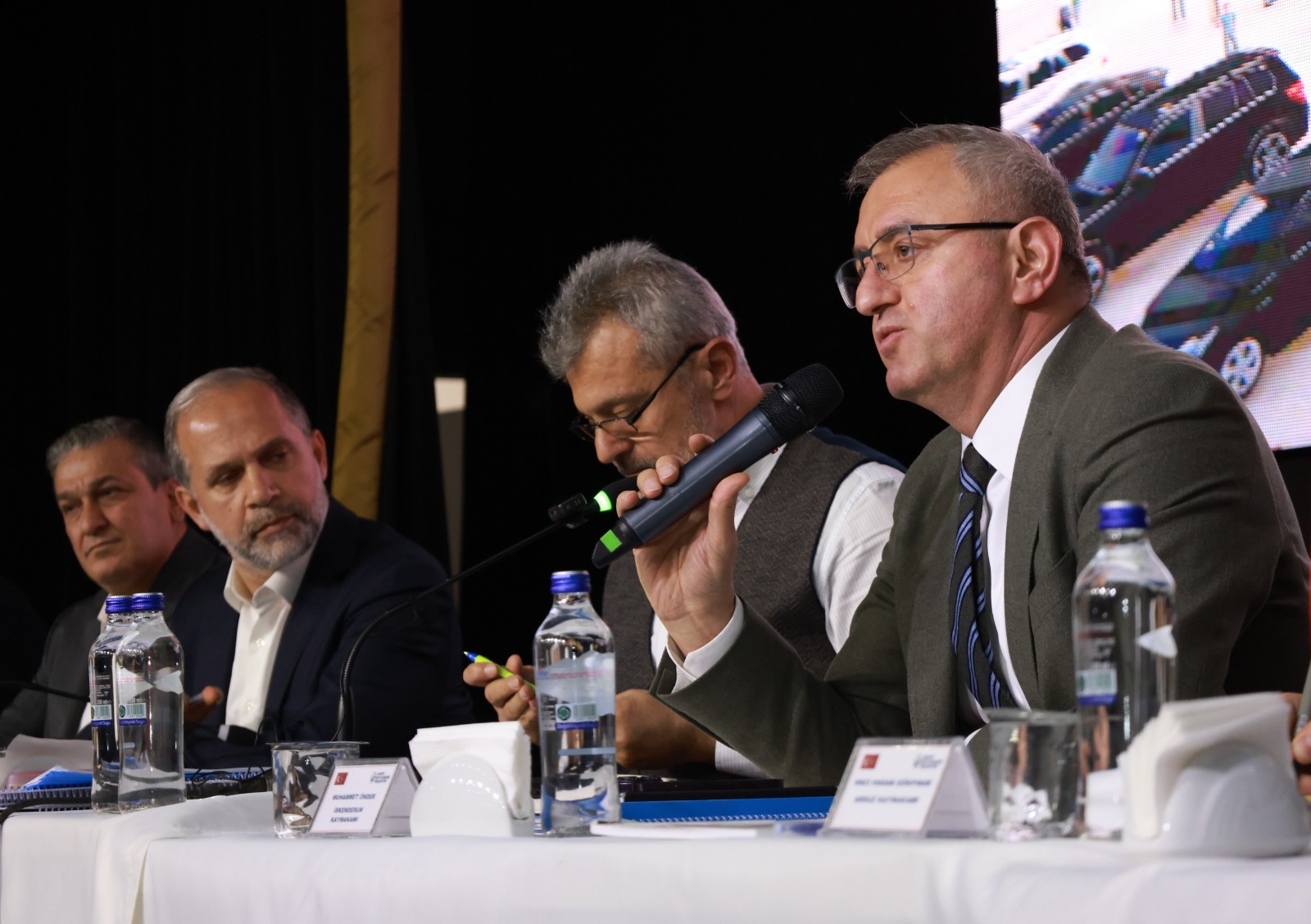 İskenderun, Belen ve Arsuz ilçelerindeki muhtarlarla yapılan son toplantı, İskenderun Belediyesi Kültür Sarayı’nda düzenlendi. Toplantıya, Ak Parti Hatay Milletvekili Abdulkadir Özel’in yanı sıra, İskenderun, Arsuz ve Belen ilçe kaymakamları, garnizon komutanları, ilgili kurum müdürleri ve büyükşehir daire başkanları da katıldı.