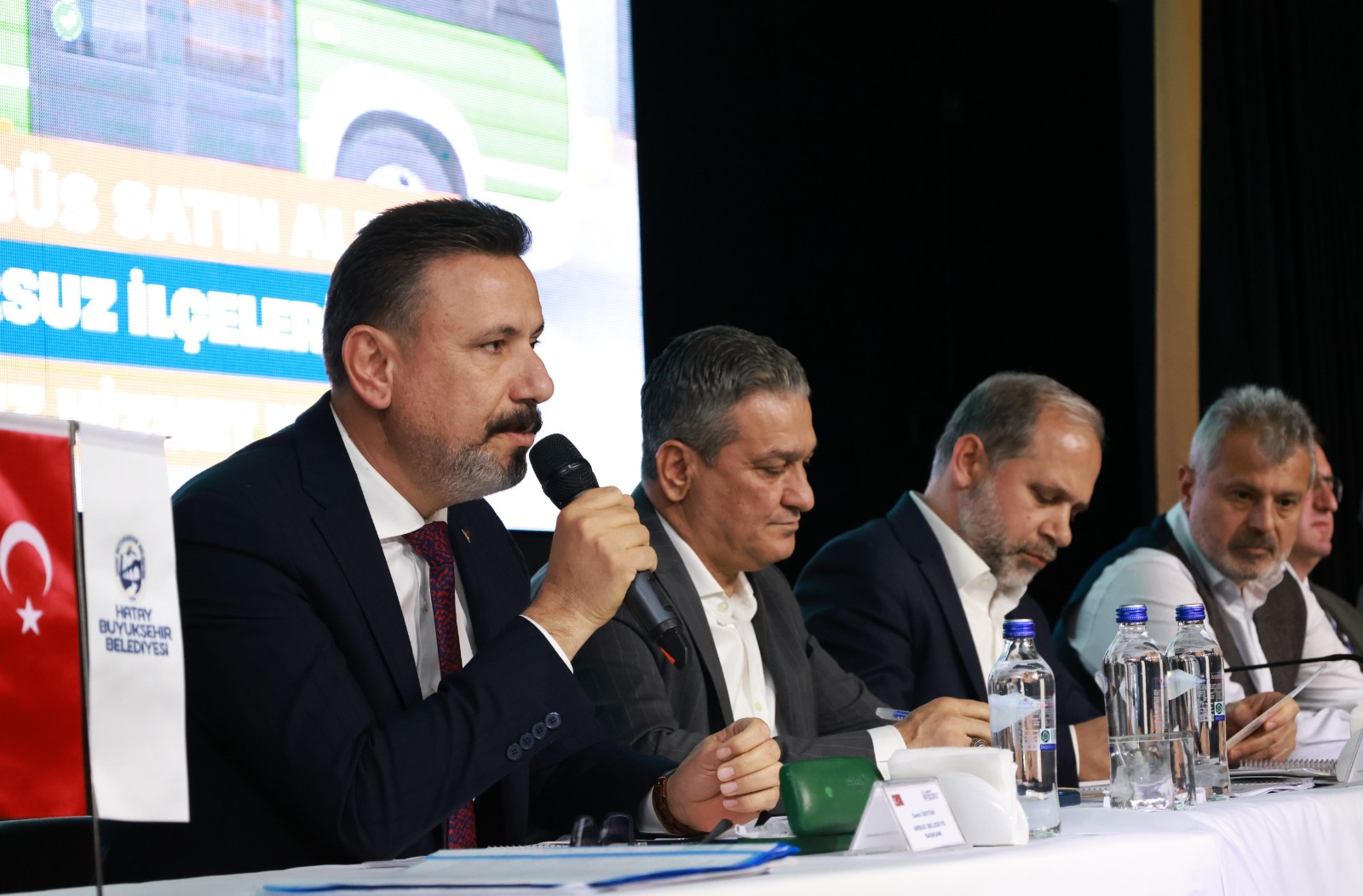 Başkan Mehmet Öntürk, burada yaptığı konuşmada, göreve geldiklerinden bu yana Hatay Büyükşehir Belediyesi’nin hizmetlerini sürdürülebilir bir yapıya kavuşturduklarını vurguladı. Özellikle HATSU’nun kanalizasyon, içme suyu ve altyapı sorunlarının çözülmesi için önemli adımlar attıklarını belirten Öntürk, “114 bin 583 arıza onarıldı, 168 bin 796 metrelik altyapı çalışması yapıldı ve 40 mahallemize sondaj çalışması gerçekleştirildi. Çalışmalarımıza devam edeceğiz” dedi.